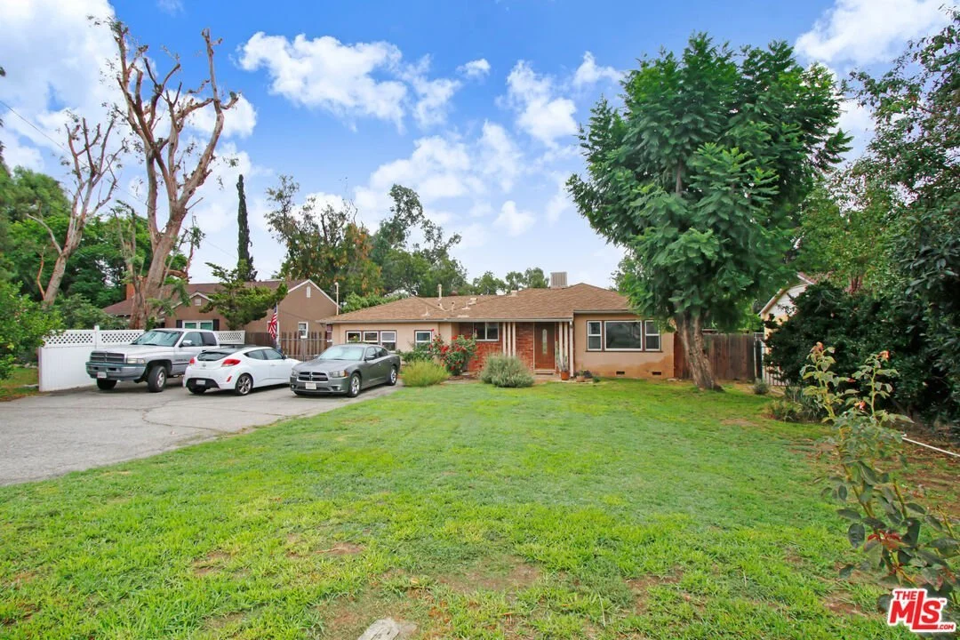Located in the tranquil Lake View Terrace neighborhood, this charming single-story residence is nestled among properties ideal for equestrian enthusiasts. Featuring three bedrooms and two bathrooms, this generous home spans an impressive 1,722 square feet. Situated on a substantial flat lot measuring nearly half an acre, or 20,020 square feet, it is zoned as RA-1-K (Horse Property). As you step inside, , you'll find a delightful living room featuring a cozy wood-burning fireplace, seamlessly connected to the kitchen adorned with bar seating, beautiful cabinets, and countertops. An additional family room opens up to a covered patio that stretches the length of the house, complete with a ceiling fan to keep you cool. The master bedroom is generously sized and comes complete with an ensuite bathroom, accompanied by two more well-appointed bedrooms. Vinyl windows grace the home, providing both a pleasing aesthetic and energy efficiency. The backyard offers the potential for an entertainer's paradise, with ample space for a swimming pool and an Accessory Dwelling Unit (ADU). Take a look at the 3D Render in the photos for inspiration. The property includes a detached two-car garage and a wide driveway capable of accommodating three vehicles parked side by side. Additionally, there is a long driveway that offers ample space for convenient RV parking.